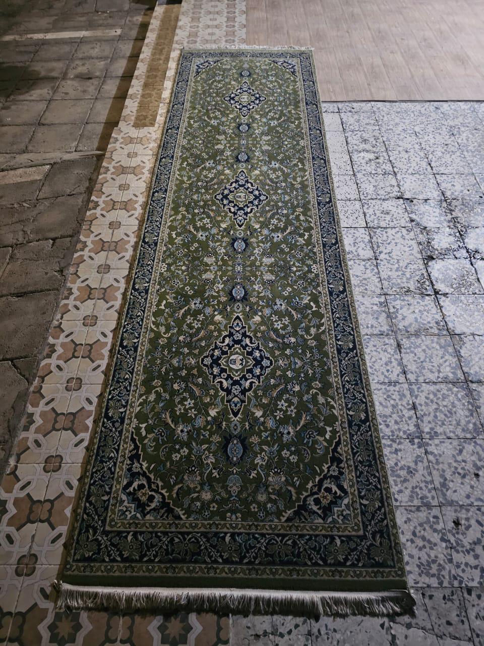 Original Green Carpet from Masjid al-Haram Makkah – Sacred Mosque Prayer Carpet (4m) Islamic Antique Textile